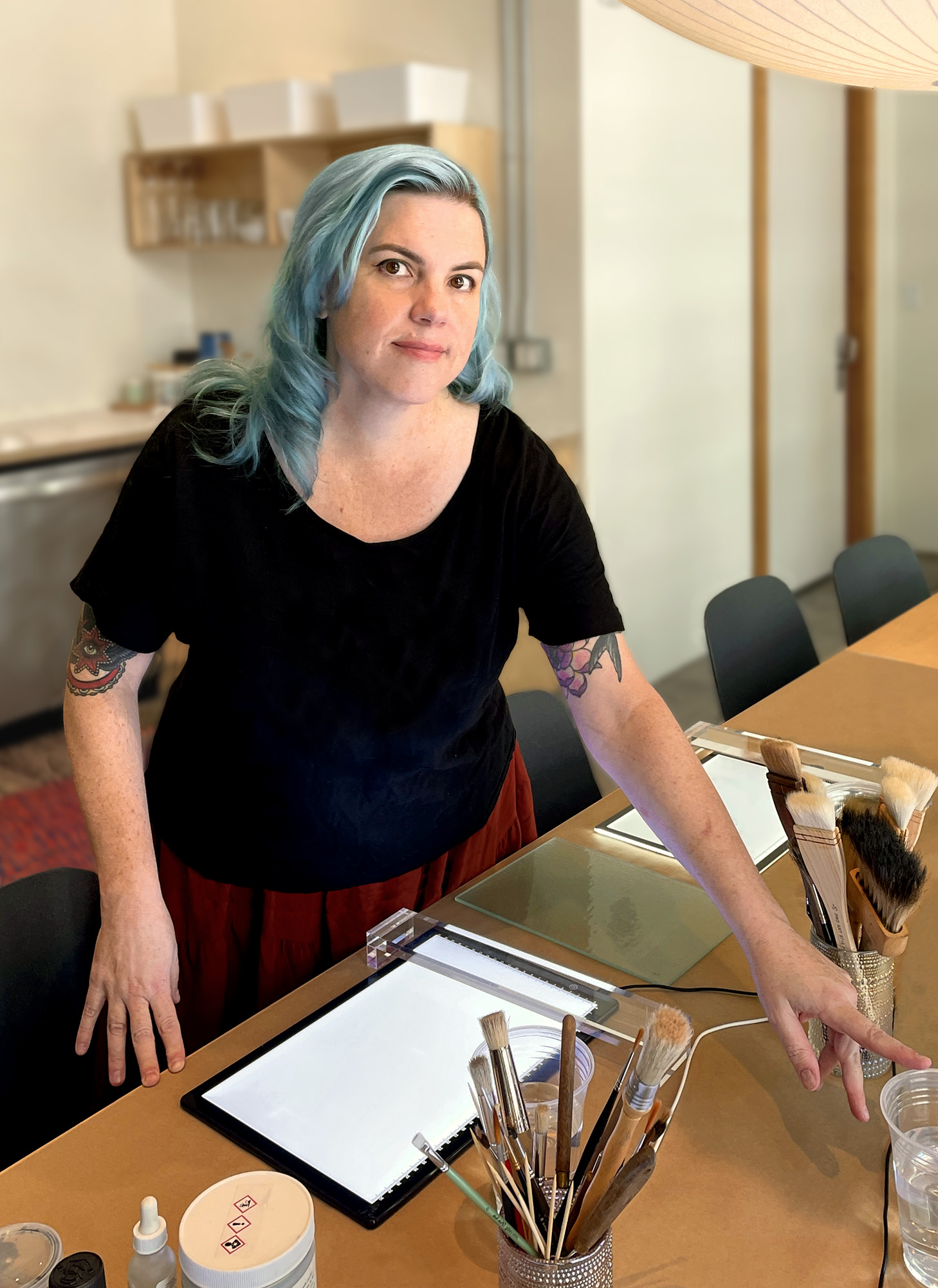 I’m Valerie Fairlight, a stained glass artist in Portland, Oregon. My work is made of glass painted with vitreous pigments and then kiln-fired, bonding the pigment permanently to the glass. The glass is then assembled with lead and solder in the same methods used to create stained glass since medieval times.